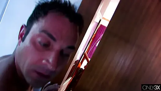 Мои би-секс друзья сцена-2_a сладострастная блондинка в нижнем белье наслаждается бисексуальным тройником и камшотом на лицо.